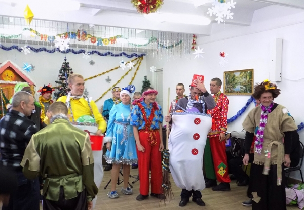 Отчет о проведении Новогоднего представления в ГБУ СО КК «Нижневеденеевский ПНИ» Новый год самый любимый, добрый, сказочный праздник, который ждут все, и взрослые и дети. Новый год - всегда ожидание чуда, волшебных превращений, приключений и удивительных перемен. 27 декабря в нашем доме интернате был проведен новогодний утренник. Подготовка началась задолго до наступления праздника. Воспитатели с ребятами разучивали стихотворения, песни и сценки, проводили беседы на тему Нового года, новогодних традиций. Огромную работу провели по оформлению актового зала: делали игрушки, вырезали снежинки, украшали елку. Ребята на представление были нарядные, весёлые, им пришлось перевоплотиться в разных героев: Бабу Ягу, Лешего, Кощея, Черта, Снегурочку, Деда Мороза, а так же были лесные жители: Волк, Лиса, Заяц, Медведь. С самого начала представления сказочные герои увлекли ребят в волшебный мир сказки, с появлением Деда Мороза начался настоящий праздник с песнями, частушками, стихами и хороводами вокруг ёлки. Ребята, участвовавшие в новогоднем представлении, проявили себя хорошими артистами, показав всё своё творческое мастерство, задор и артистические способности. После представления ребята фотографировались с Дедом Морозом и Снегурочкой, получали новогодние подарки. Многие любят зиму, потому что это самое красивое время года и потому что зимой такой прекрасный праздник — Новый год. Люди в Новый год становятся добрее и счастливее. Всех с Новым годом!